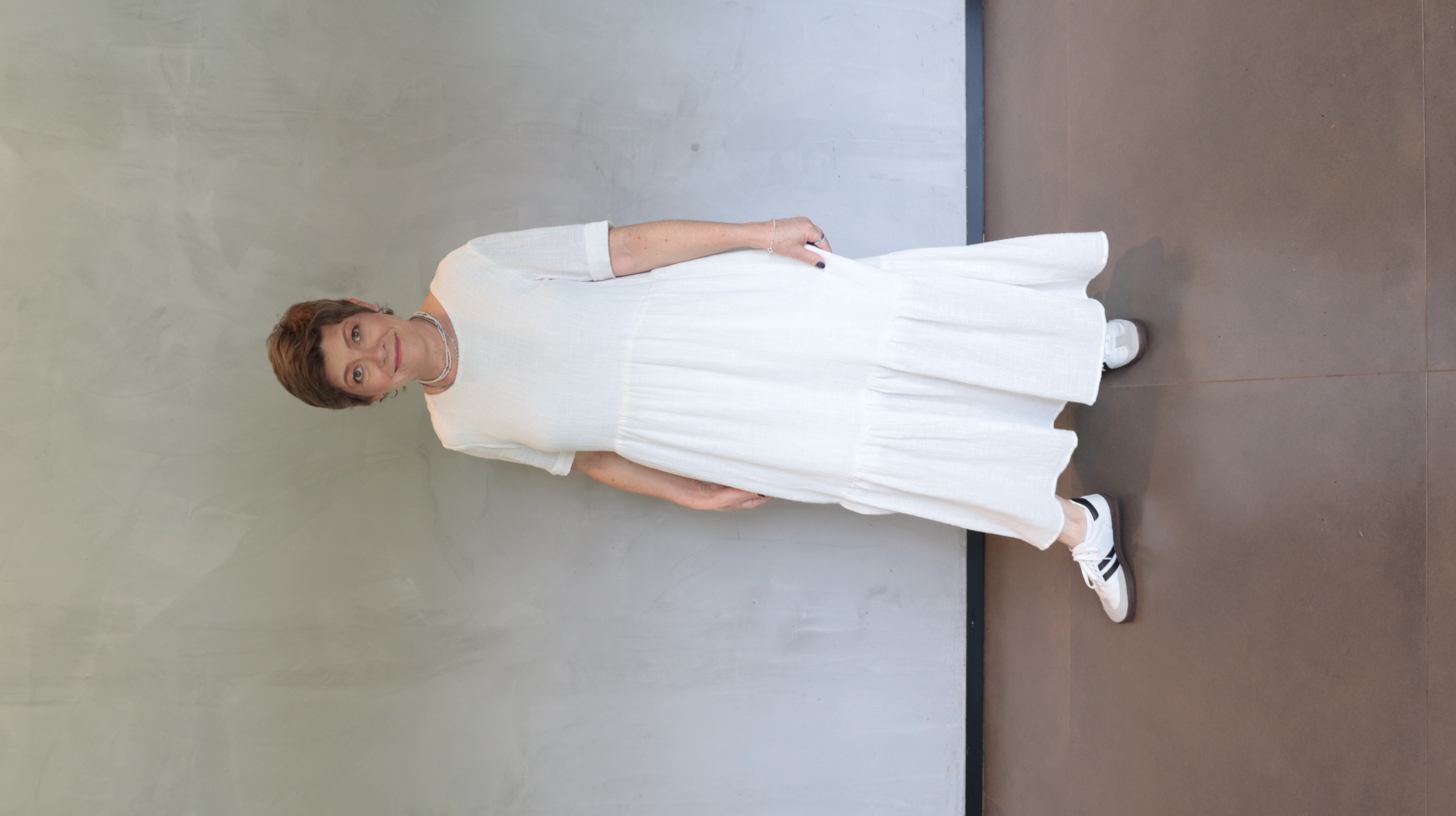Vestido oversized com duas camadas de babado, forro e cinto bordado a mão.
